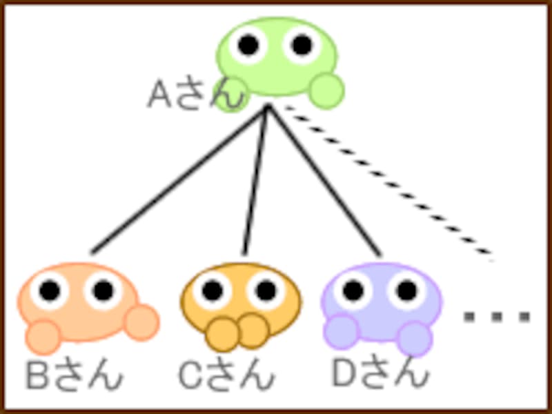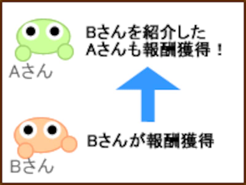 例えば、Bさんが5000円の成功報酬を得たとします。するとその5%の250円がAさんに支払われます。Aさんは何も販売していないにも関わらずです。