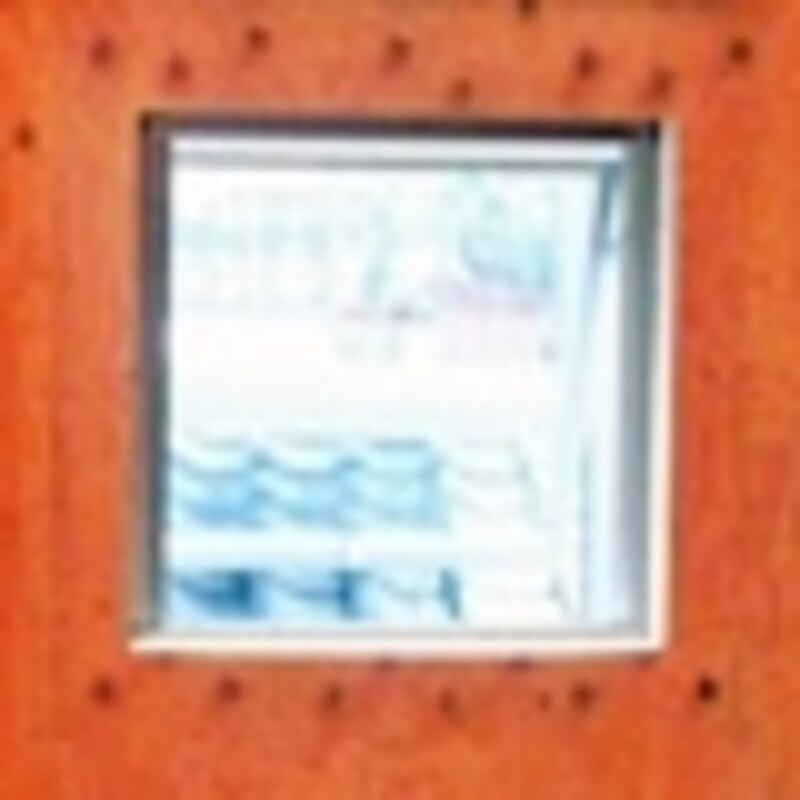 2階は水廻りのフロアになっています。階段を昇ると、まず洗濯室に着きます。この洗濯室は吹抜けに面しているため、リビングを眺める明るいバルコニーのような空間になっています。ラーチ合板で作られた引戸を開けると、その先は浴室です。浴槽の上部には正方形の窓が設けられ、ここから自然光が入り室内を明るくします。