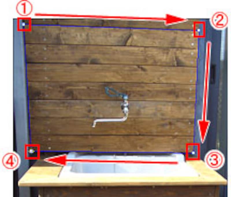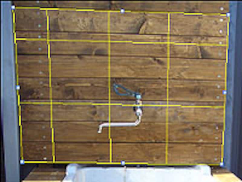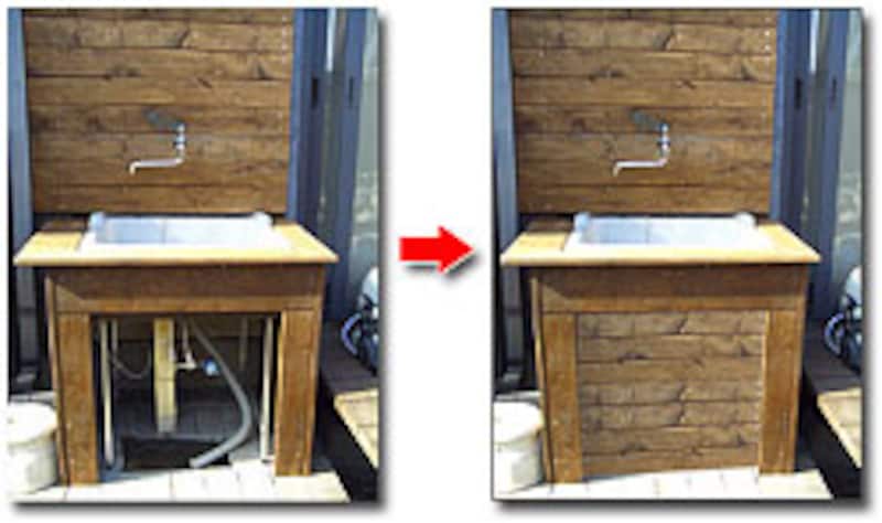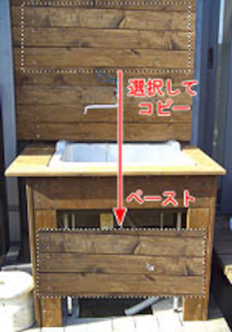 台の下の配管部分を覆い隠すシミュレーションを行いたいのですが、遠近感が付いているために、今まではコピースタンプツールや単純なコピー&ペーストだけではできない作業でした。↓