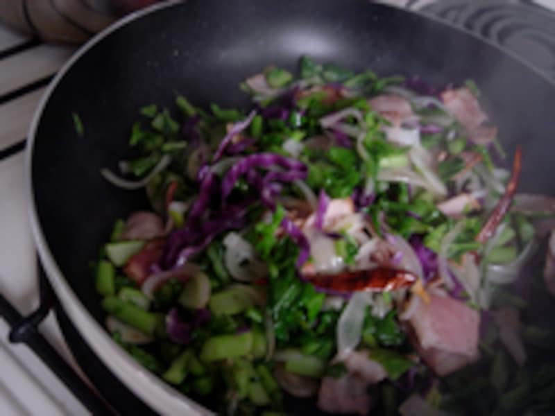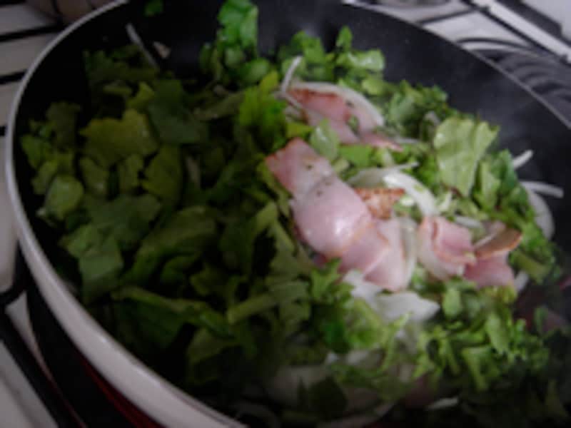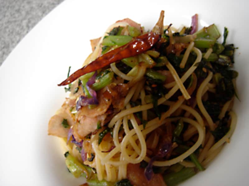 所用時間:20分 相性のいい飲み物:白ワイン大根葉とベーコンの和風スパゲッティの作り方