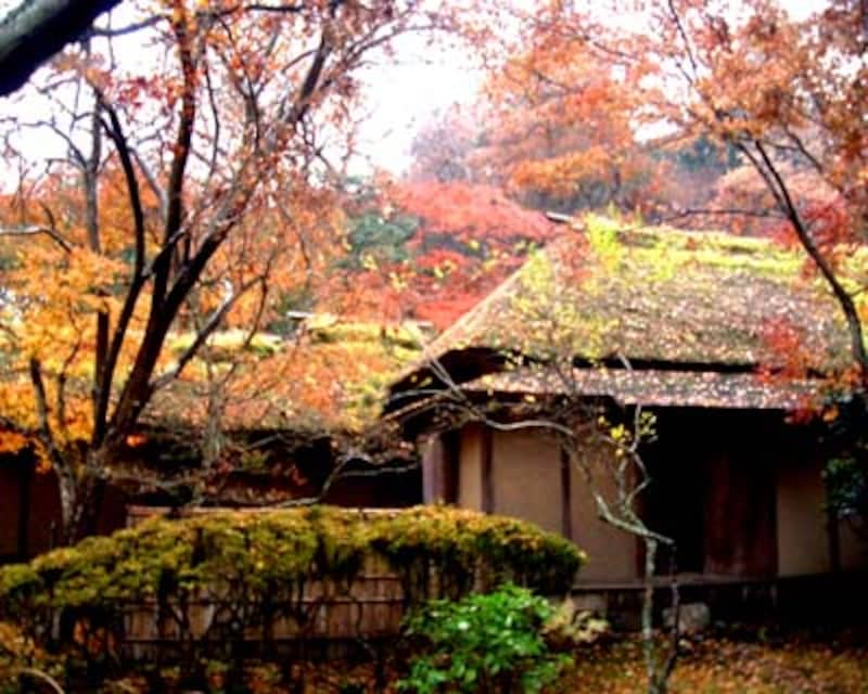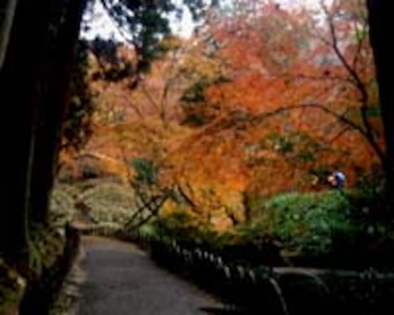 小さな門に続く生け垣と石畳。門の先には燃えるような紅葉。その様子はまるで京都は嵯峨野の風情。でもここは茨城県常陸太田市。実は水戸黄門こと、2代水戸藩主徳川光圀公の隠居所であった西山荘なのです。