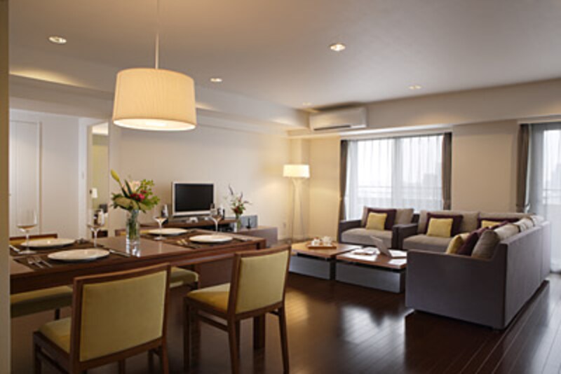 | ホテルのスイートルームのような広さのお部屋も多数。家具・家電付で、フロントサービスも利用できるから快適。(写真は「フレイザープレイス・ホフ新宿」のウェストタワー「2ベットルームプレミア」) |